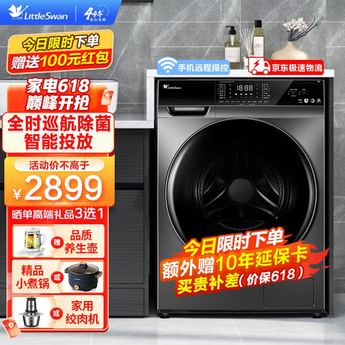内置照明筒灯,取衣时可照亮您的视野范围,夜间使用更舒心;10KG大容量设计,可清洗全家人衣物。