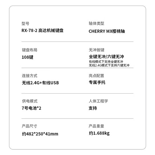 支持有线和无线两种连接方式,满足您不同场景的需求。全键无冲突设计,让您每次操作得到准确的反馈。
