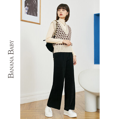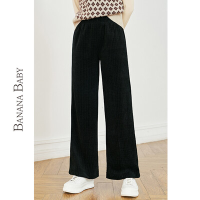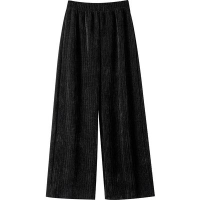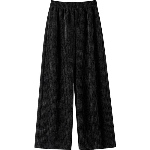 采用丝绒材质,面料接触舒适。优雅黑色系,穿着具有高挑显瘦直视感。宽松直筒阔腿裤设计,增添大方知性,且易搭配服饰。