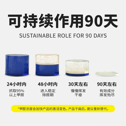 采用食品级凝胶原料,祛除甲醛时凝胶颜色变白,看得见的除醛效果。对苯、TVOC气体都有一定的清除抑制作用,给你清新健康的居住环境。