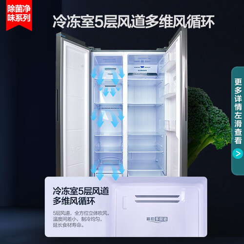 内胆HIPS的材质,不会散发出有害物质,呵护家人的健康。第四代循环风技术,带来均匀的制冷能力,保鲜效果佳。
