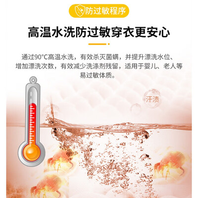 采用顽渍净ECO技术,科学带走不同污渍,衣物洁净如新。拥有90℃高温水洗功能,消灭过敏源,守护宝宝的娇嫩肌。