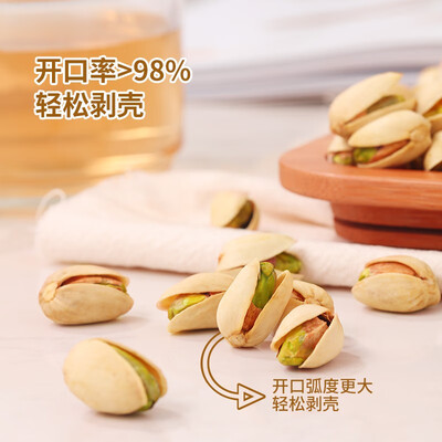 色泽自然淡黄,品质安全无漂白,让你每一口都吃的放心。拥有高开口率,剥取果仁方便轻松,口感香脆大人孩子都喜欢吃。