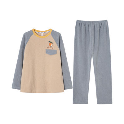 这款采用了珊瑚绒的材质打造而成,上身宽松舒适,睡裤更大气有型,不会显得过于繁琐。