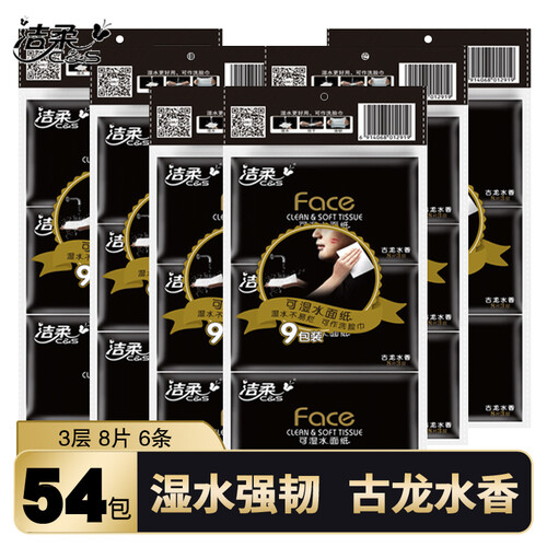 钱夹纸设计,轻薄小巧,更加易于携带。纸质柔韧厚实,湿水可做洗脸巾,方便贴心。淡淡古龙香,彰显优雅品味。