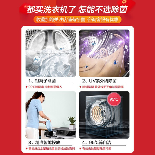 10公斤大容量,可以一次性收纳较多的衣物,更好满足全家人清洗需求;变频电机,运行更加平稳安宁,洗衣无干扰。