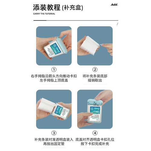透明的封闭式盒装设计,可以轻松知晓其中剩余量,随时可以轻松添加。盒身内可整齐排列,不易产生散乱,出行也可方便的携带。