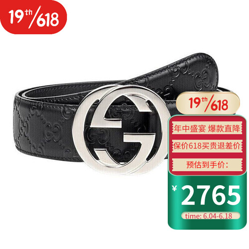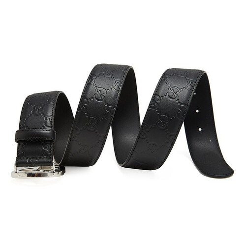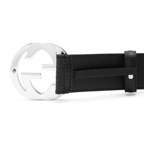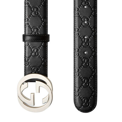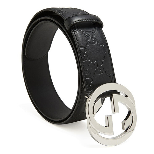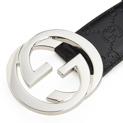 大G压纹皮带设计,精致时尚,纹理清晰,彰显质感。银色互锁板扣设计,光泽亮丽,时尚有个性。