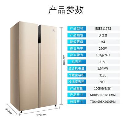 伊莱克斯 除味对开门冰箱