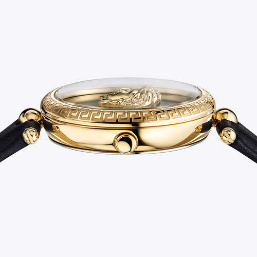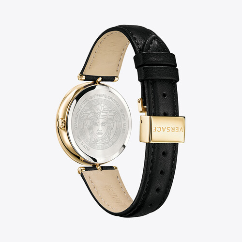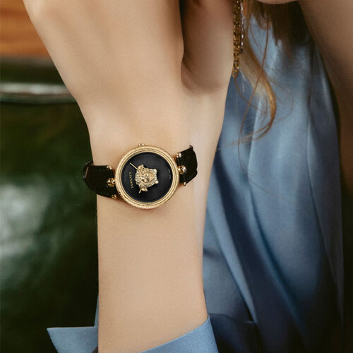 腕表表盘采用范思哲经典的美杜莎头雕设计,腕表充满诱惑力。采用源自瑞士的制表工艺,进口石英机芯,准确计时。