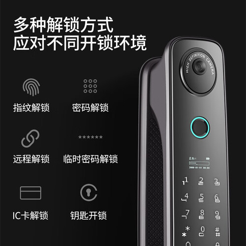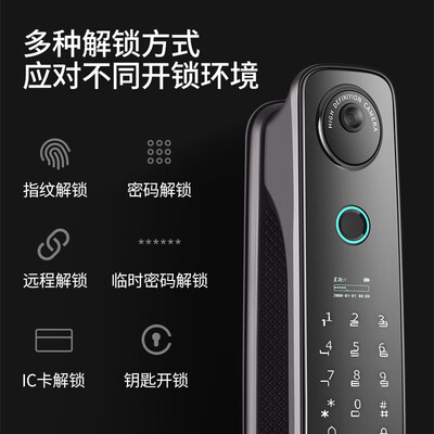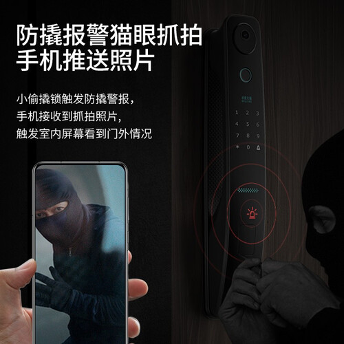 联动APP操控功能,门前有来客实时抓拍,确认无误再开启,严谨不已。试错报警装置,超过规定次数即自动锁住,提升安全性。