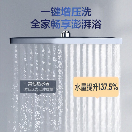 一键增压,给你瀑布般的强劲水流,爱上沐浴好时光。结合APP远程控制,让手机变身遥控器,随时调节方便省心。