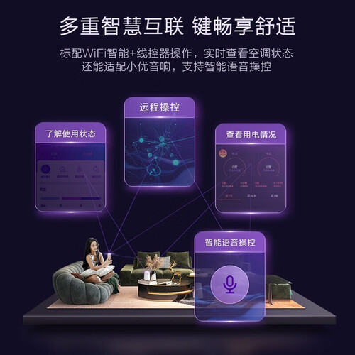 搭载国际品质的双转子式压缩机,冷暖效率高,速度快,运行声音低不扰人。三维广域环绕风技术,全屋冷暖更舒适。