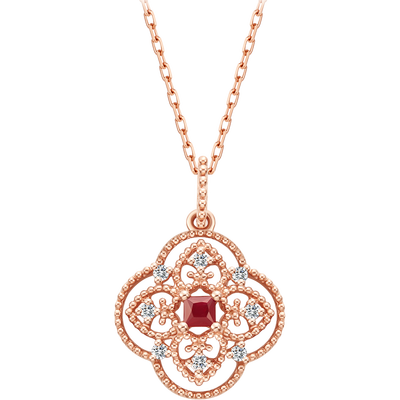 融入复古窗花的元素,用金珠沿着四叶草线条紧密地排布,构图繁复华丽。红宝石和钻石的光芒交相辉映,带来更丰富的视觉效果。