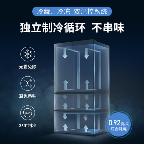 内置分层全开式抽屉,可一拉到底,取放轻松。并且拥有上下分区,可分类摆放,有效的提升空间利用率,让冰箱不再杂乱。