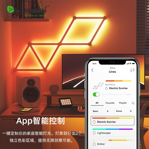打开音乐模式,它的灯效可跟随音乐节奏跳跃,能带来更有沉浸感的音乐氛围。还支持HomeKit,可通过手机和语音控制操作哦。