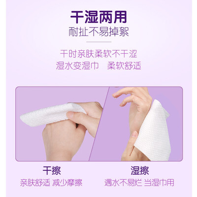 优选100%植物纤维面料,触感蓬松又柔软,可以代替毛巾擦拭皮肤。支持干湿两用,遇水湿擦不易破烂,也不会掉絮。