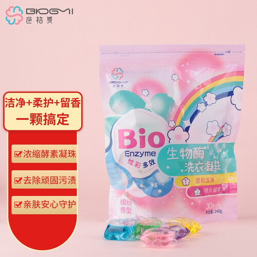 采用水溶性外膜设计,洗衣时无需手撕外壳,遇水即溶,不会有残留物质;高活性剂浓缩而成,去污能力更强,轻松洗净脏衣服。