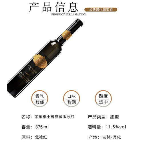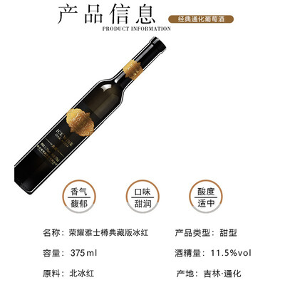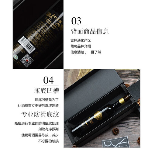 以北冰红葡萄作为原材料,保留更多糖分,让酒水更加甘甜柔和,入口细腻顺滑。纤长瓶身搭配礼盒包装,质感高级。