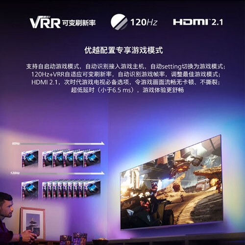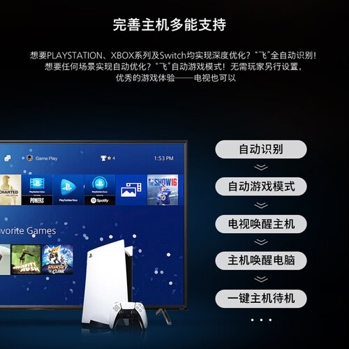 内置AI仿生智能芯片,可五大维度智能优化画质,呈现清晰画面。搭配杜比全景声效,宅家也能感受影院般的音画品质。
