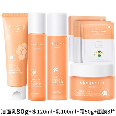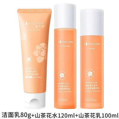 洁面乳能够温和清洁肌肤,洗后肌肤洁净清爽不假滑。精华水乳蕴含山茶花成分,能够舒缓肌肤,提供水润能量。