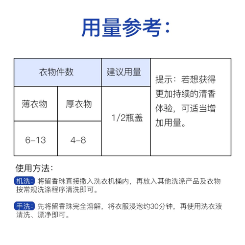 无化学成分添加,安全无害,贴身衣物也能使用,守护身体健康。摩擦生香,在日常生活中经过摩擦能持续释放香气。
