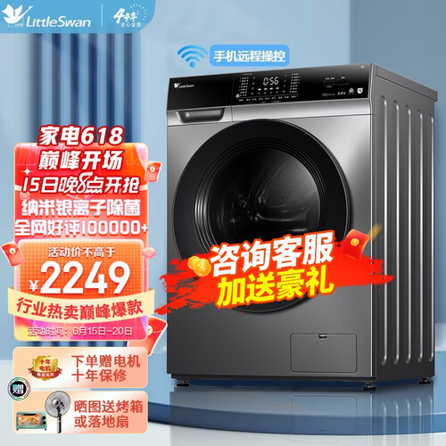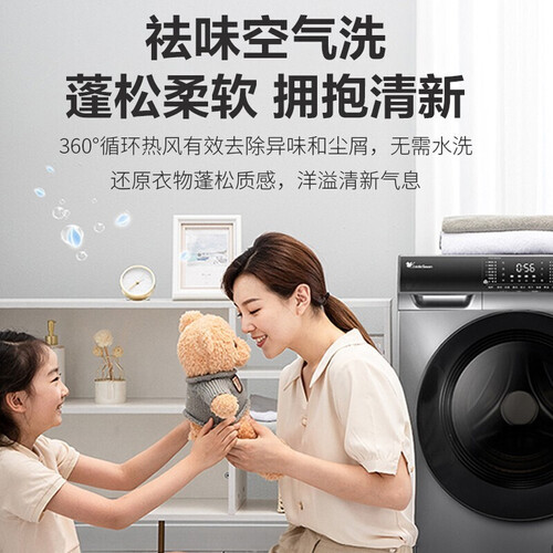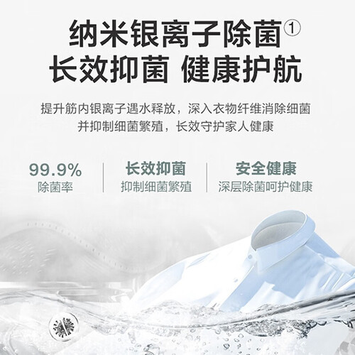 纳米银离子抑菌功能,出水流量大清洁力度高,能够快速瓦解顽固污渍;洗烘一体机,衣物免晾晒,节省大量休闲娱乐空间。