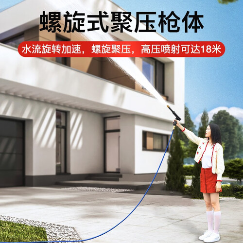 高压水炮可达20米,轻而易举的就能冲洗窗户,享受惬意的过程。枪头旋转式开关设计,轻轻扭动就能调节,水势大小收放自如。