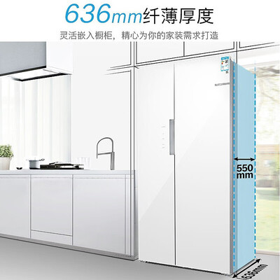 63.6cm的纤薄机身,可轻松与橱柜融为一体,无需占用过多的厨房空间。铂金净风系统,长效净菌,守护食物新鲜健康。