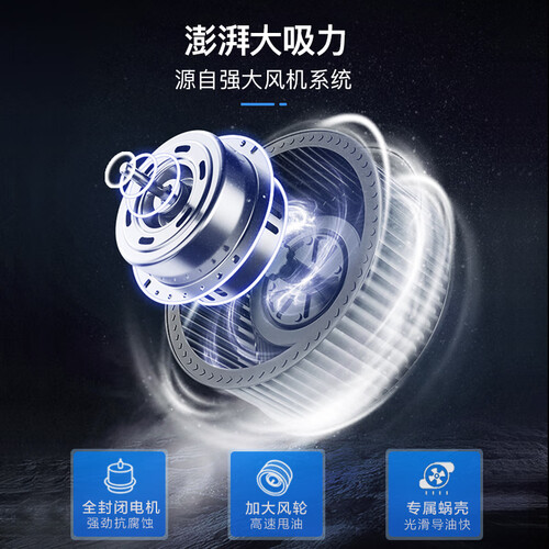 采用双层错位设计,减少油污渗透内部,保证发动机的洁净。具有60s延时关机功能,彻底吸除残留油烟,还你清新的厨房空间。