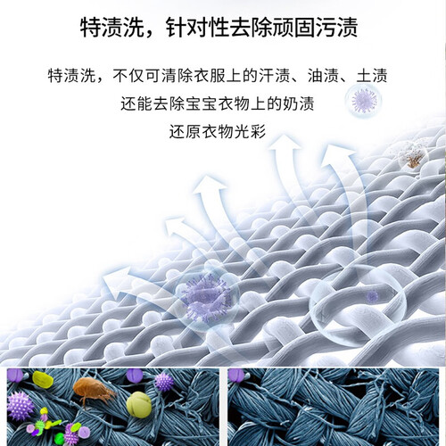 抑菌活水洗,全程无菌洗涤,洗后衣物更加洁净卫生。登陆舱式减震,避免撞桶,减少噪音,平时清洗衣物不用挑时间。