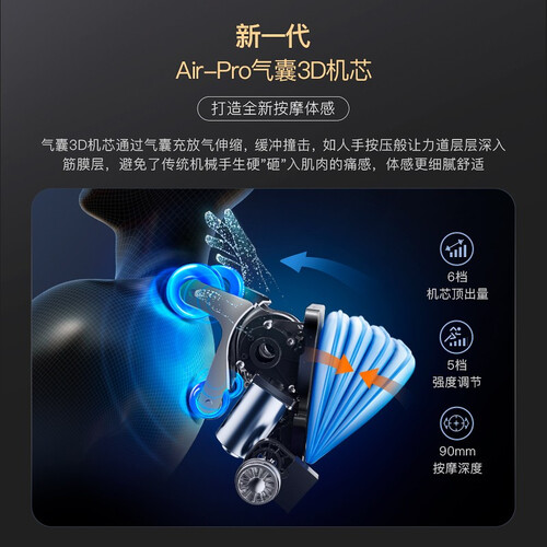 3D拨筋按摩,拨开酸痛点,深度放松深层肌肉和穴位。同时具有泰式拉伸等10套自动程序,满足全家人的按摩需求。