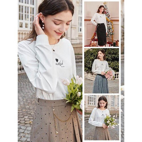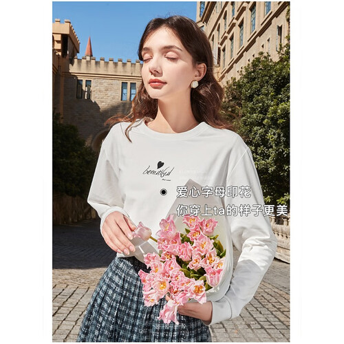 融入字母爱心印花,款式好看外观别致,散发时尚气息,内搭、外穿都好看,解决搭配烦恼。宽松版型,可以轻松隐藏赘肉,穿衣很显瘦。