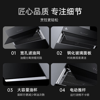采用全塑封三防铝线电机,无惧高温,给烟机提供持久大吸力。燃气灶精心加宽炉心距离,可同时放置两个大锅,不碰撞,烹饪更自如。