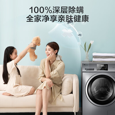 支持一键启动除螨洗,不仅能洗净衣物,还能有效除螨,呵护家人肌肤健康。机身内置多个感温探头,衣干即停,让衣物更蓬松。