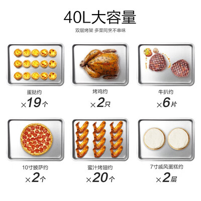 烤箱内配置NTC电子感温探头,实时监测腔内温度,灵敏控温1摄氏度。搭配双层烤架设计,多菜同时烹饪不串味,满足聚餐所需。