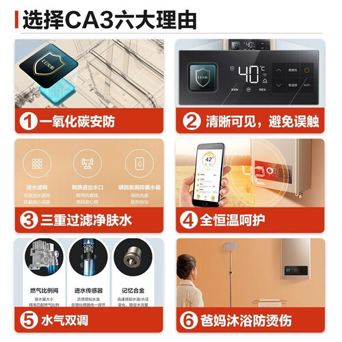 采用自抗扰芯算法,实现准确调控,恒温升级,享受舒适沐浴。主动安防技术加持,实现全环境监测,带来安心守护。