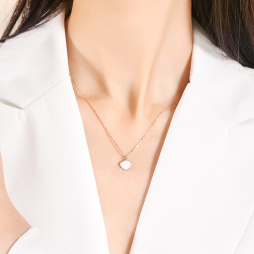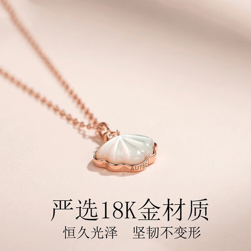 甜美贝壳设计,“一贝子”代表对伴侣一辈子爱的承诺。洁白贝母采用镜面抛光工艺,与K金和钻石元素结合,熠熠生辉。