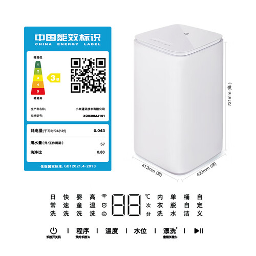 采用3kg精致容量设计,精细洗护母婴衣物,减少交叉感染的烦恼。搭载迷你机身设计,节约空间,宿舍党优选。