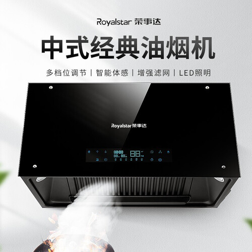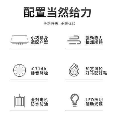 强劲防水电机,稳定输出澎湃风量,双灶浓烟都可搞定。大屏数码显示,科技感强烈,功能操控一目了然更易操控。