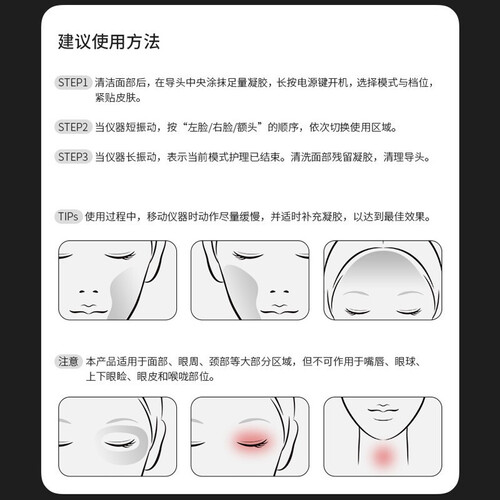 智能温控系统,防止温度过高灼伤肌肤屏障,使用更安心舒服。全息微电流,提拉紧致、抚平皱纹,轻松打造小V脸。