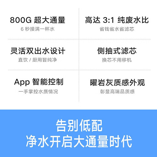 支持UV紫外线除菌,能够灭杀致病细菌,解决二次污染问题,直接取水喝更安心。净水产出率达到75%,具备一级水效,节能省钱。