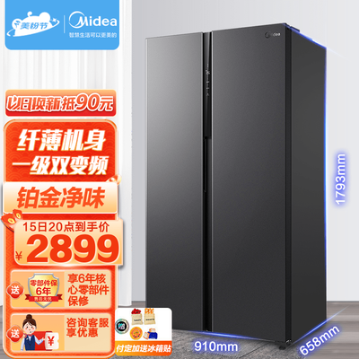美的 铂金净味对开门冰箱