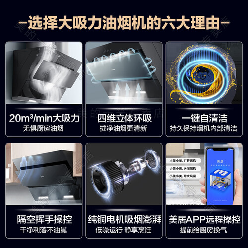 立体环吸,爆炒时的油烟四溢也能轻松迅速的吸走排净,时刻让厨房清新洁净。智能干洗的设计,风扇持久动力不易老化。