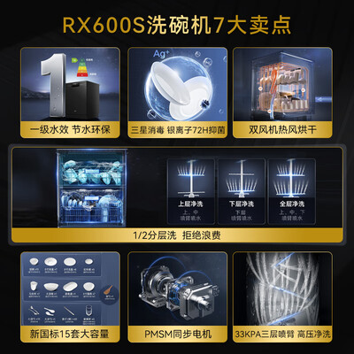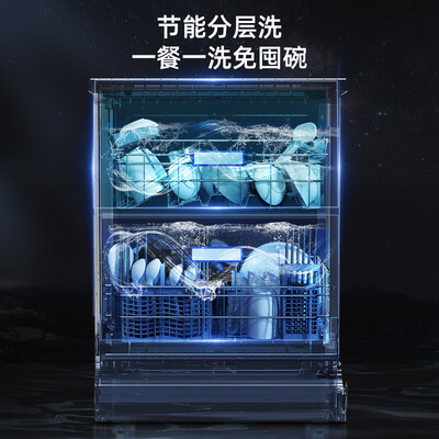 洗消烘存一体洗碗机,餐后可解放双手,餐具清洁一步到位更省心。节能分层洗,根据需求选择不同洗涤模式,省水省电又节能。