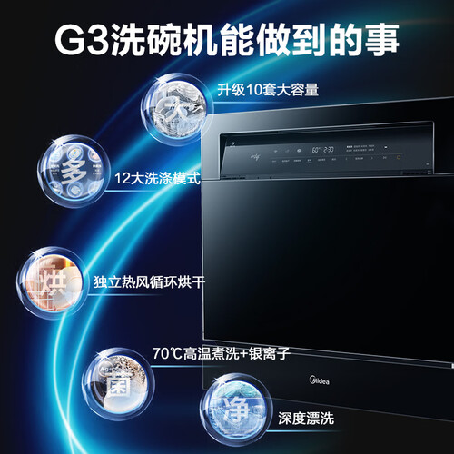 深度漂洗,顽固油污也能轻松去除,让餐具洁净如新。银离子高温煮洗,可快速去除异味、霉菌,呵护家人健康。