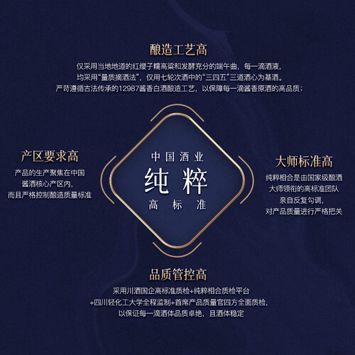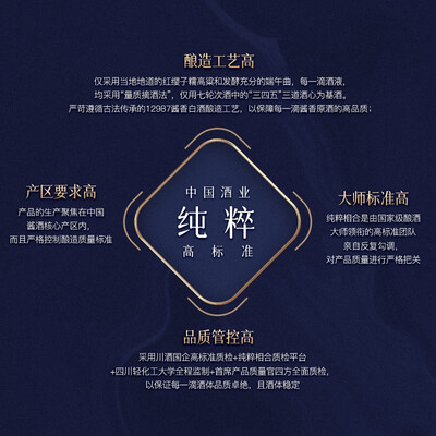精选红缨子高粱并经过传统工艺酿造,让酒体醇厚丰满,入口顺滑不辣喉。选用7年基酒与15年老酒勾调,成就滴滴醇香的好酒。