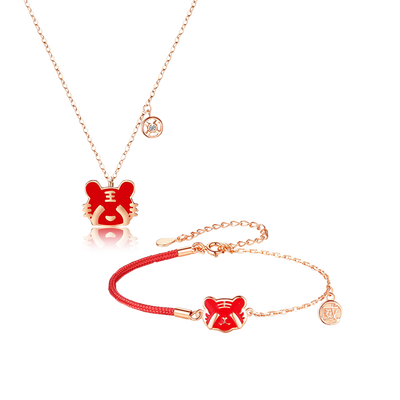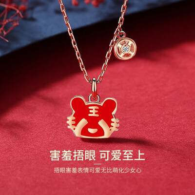 可爱小老虎吊坠,双手捂住双眼,软萌有趣。结合焕彩珐琅工艺,颜色可深浅变换,不觉平庸。威武小吊牌,二者相互映衬,时髦易搭。