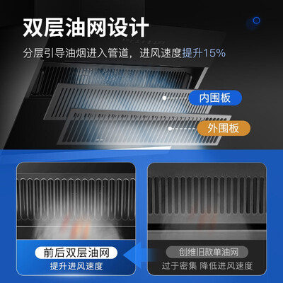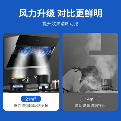 具备460pa大静压,强劲畅排油烟不倒灌,远离隔壁菜香味。灶具采用黑晶玻璃面板,油污一抹即净,便捷打理。