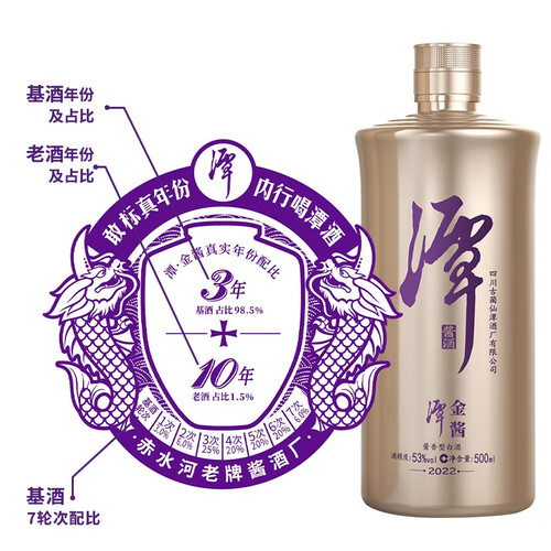 酒厂年产2万吨酱酒,4万吨老酒储量,能够保证出产的每一瓶酒都是所标识的真实年份。采用大曲坤沙酿造,口感佳、收藏价值高。